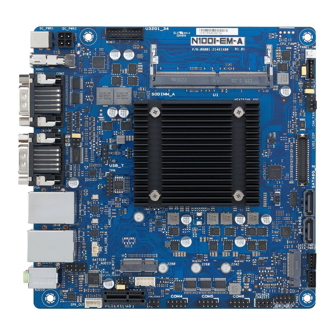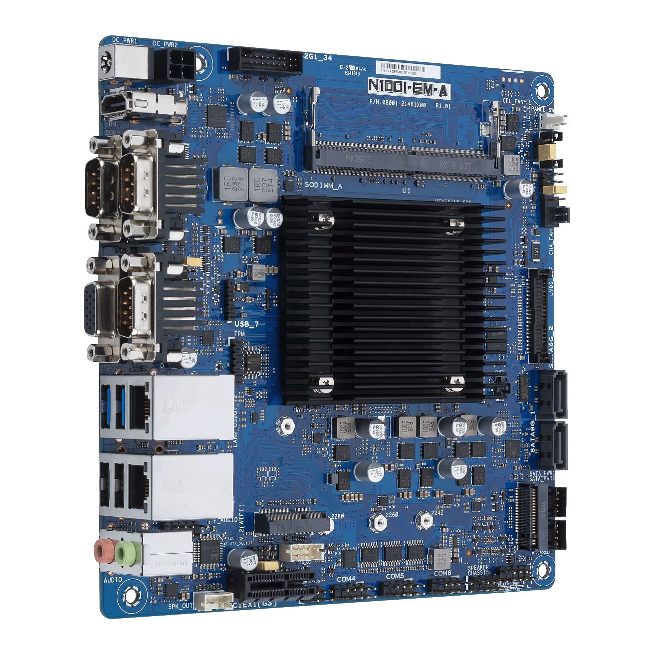 Intel N100, Mini-ITX Motherboard, 1*DDR4 up to 16GB, 4*USB 3.2 Gen2, 3*USB 2.0, 1*VGA, 1*HDMI, 1*LVDS, 3*COM, 2* M.2 |