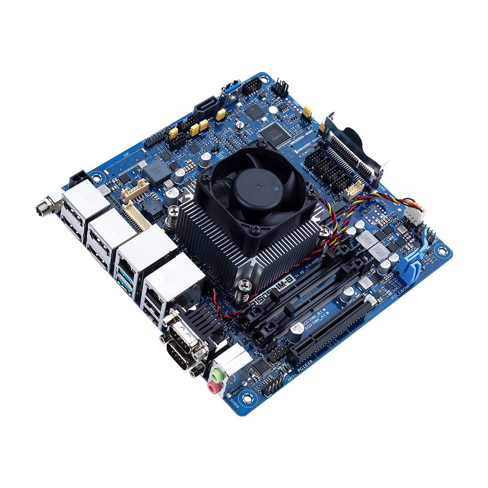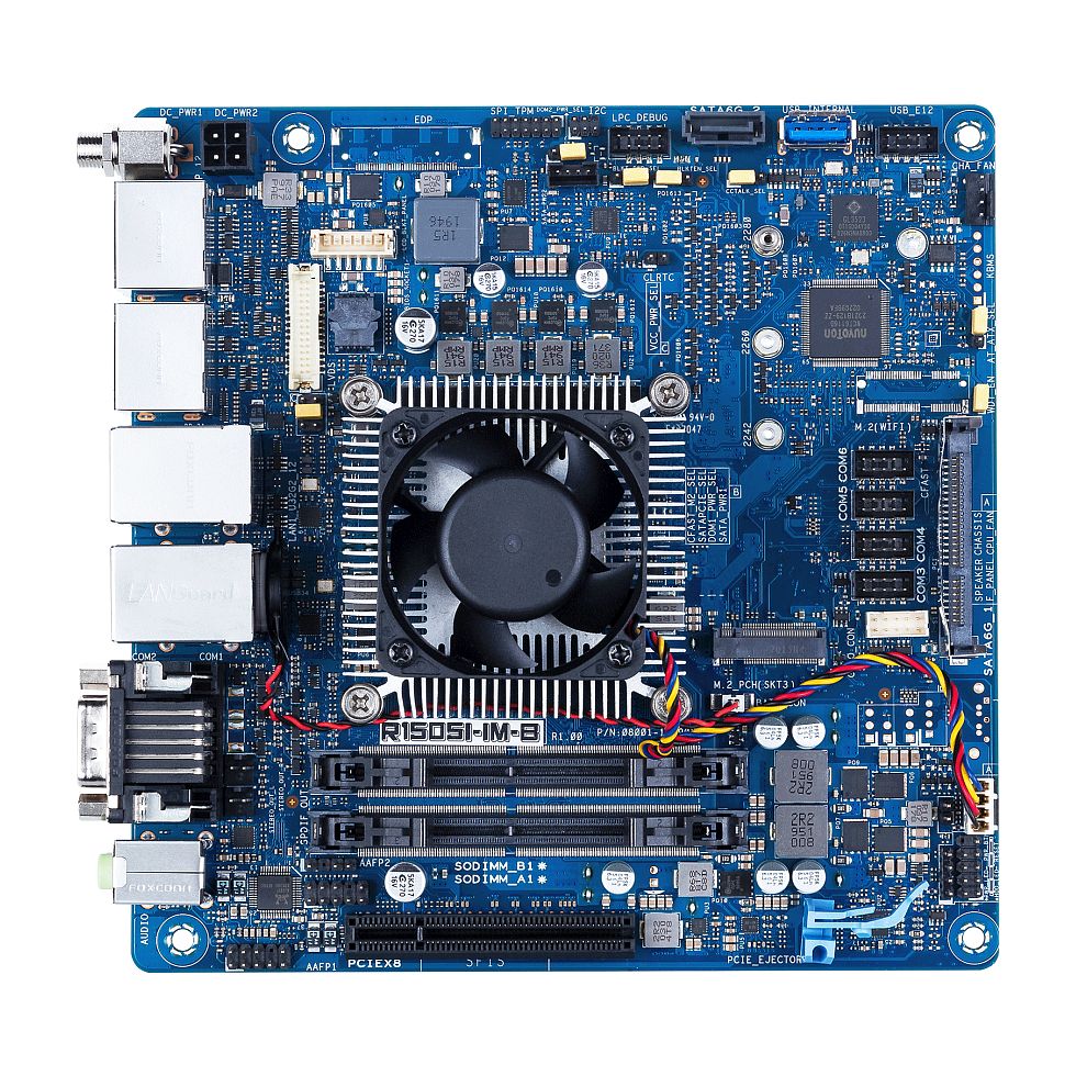 | Mini-ITX motherboard for AMD Ryzen™ Embedded R1505G APU, up to three 4K displays, M.2 M key, 2 x SO-DIMM, DP/LVDS,CFAST, PCIe x8, 6 x COM |